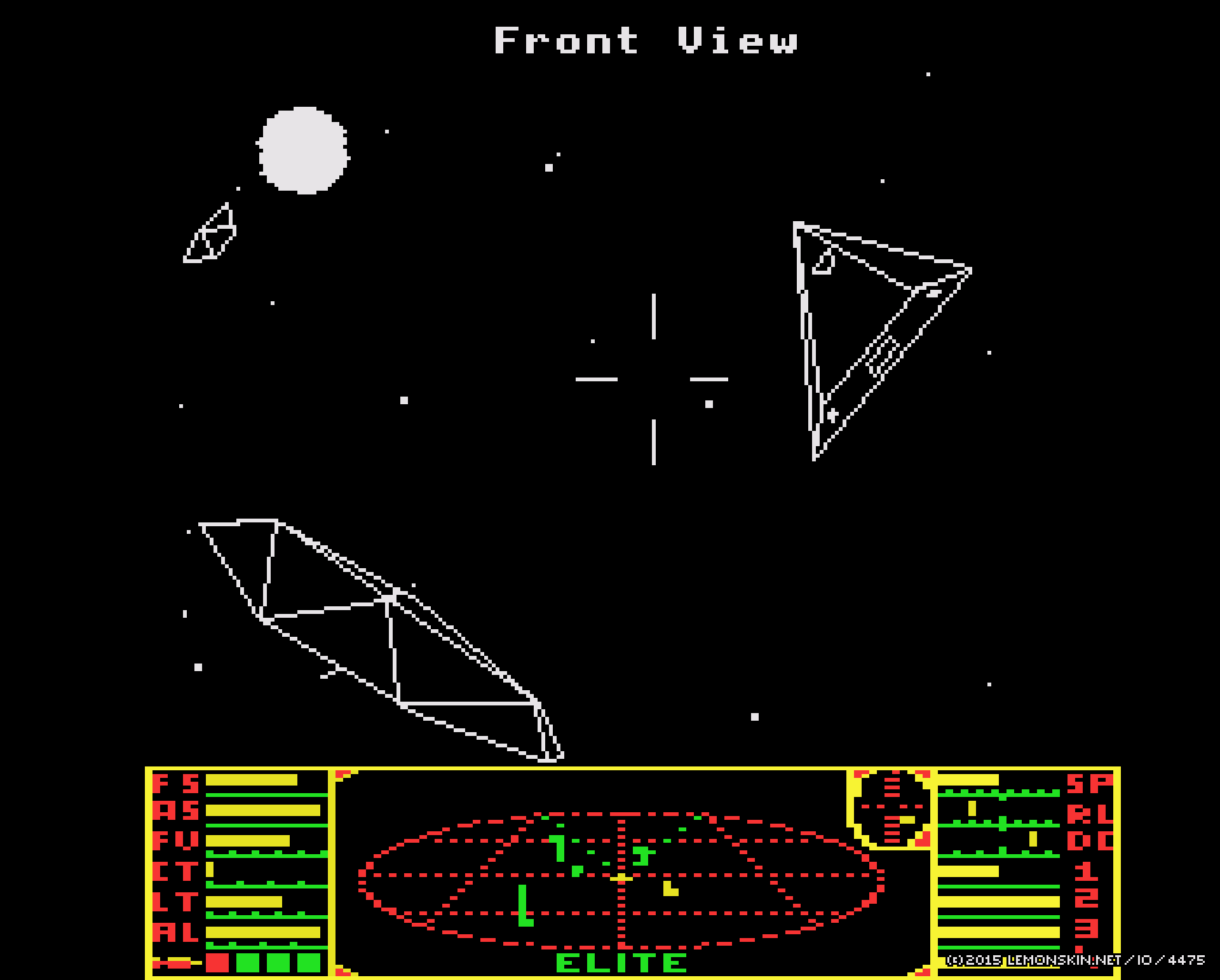 Elite è un videogioco di simulazione spaziale, creato originariamente da David Braben e Ian Bell nel 1984, che si è diffuso su quasi tutte le piattaforme di home computer esistenti durante il corso degli anni ’80. È stato il primo gioco ad avvalersi di grafica tridimensionale, sebbene la limitata potenza dei computer dell’epoca permettesse soltanto l’uso della modalità fil-di-ferro, ciononostante è considerato ancora oggi il capostipite di tutti i giochi spaziali e, di sicuro, uno dei più originali.