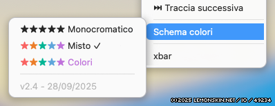 Per mitigare un po’ l’inconveniente ho introdotto tre diverse modalità di visualizzazione: una monocromatica, dove tutte le scritte sono in bianco o nero; una mista, in cui il testo segue la barra mentre le stelline sono colorate; e una interamente a colori, con tutti gli elementi in tinta. Ho anche accorciato in modo smart il titolo sulla barra quando troppo lungo e reso dinamico il menu dei voti: adesso mostra il rating corrente evidenziato.