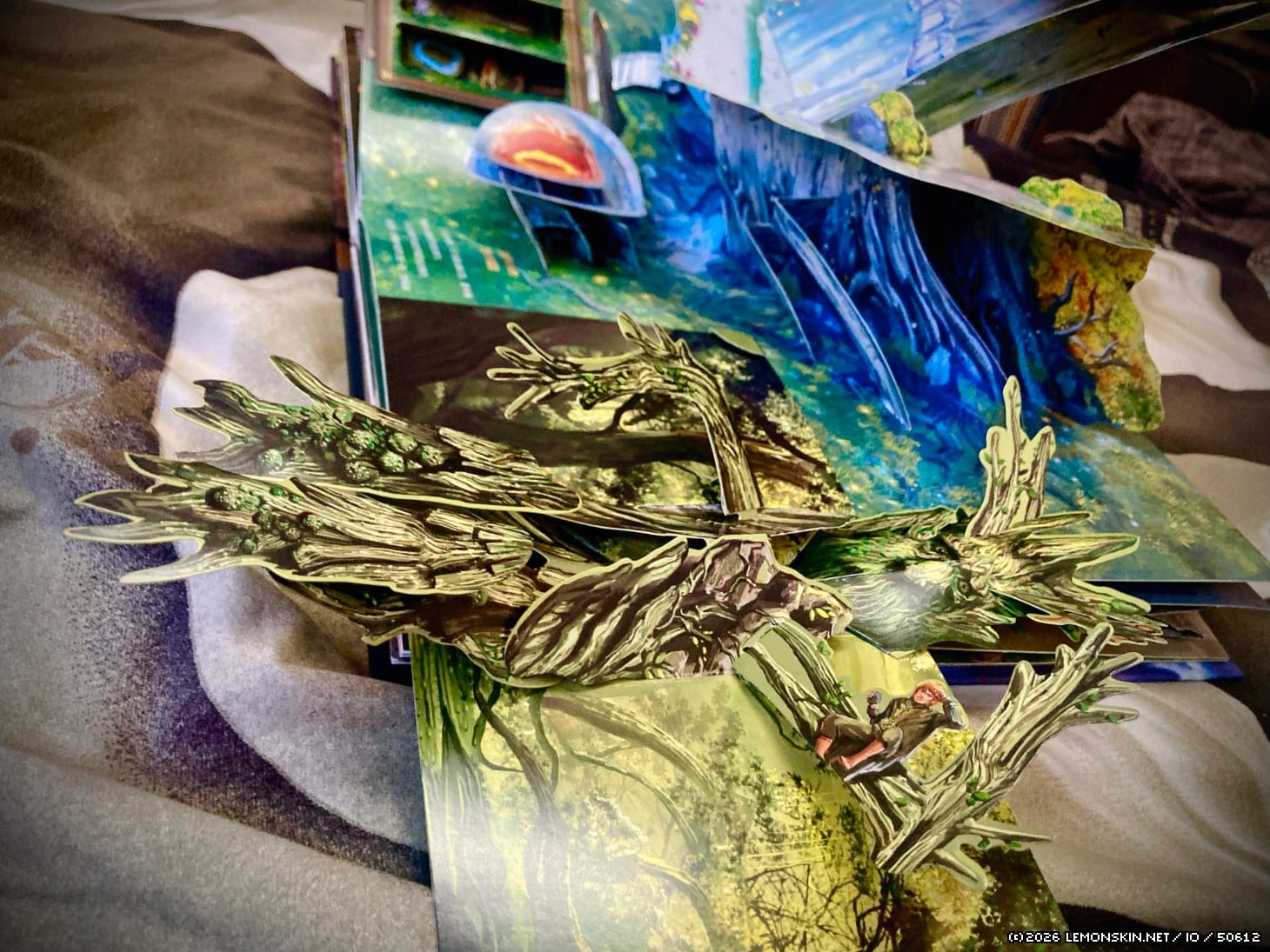Una nota importante sul presente volume: contrariamente alle opere di Reinhart o altri libri popup come quello dello Hobbit, qui non vi è la minima traccia di colla: tutte le connessioni sono a incastro (anche solo collegare tutti gli elementi tra loro deve essere stato un compito ai limiti della follia per chi lo ha assemblato, e apprezzo ancora di più il prezzo di copertina piuttosto contenuto di 40 euro); In questo modo il tempo non potrà intaccarne il meccanismo perché non ci saranno collanti che potrebbero seccarsi e dunque staccarsi.