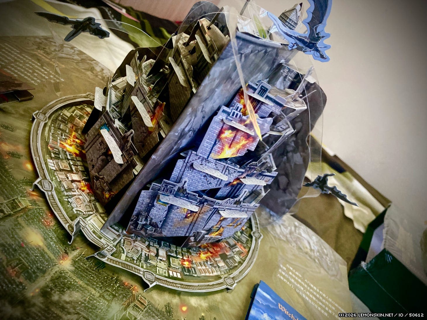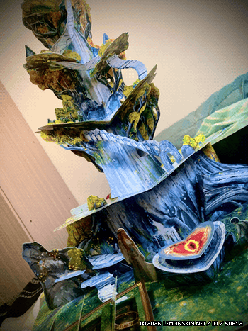 Lo scatto non rende alcuna giustizia alla scena. L’ho incluso semplicemente per far notare che ogni angolazione è stata curata nei minimi dettagli. Sul retro le immense ali (reali o immaginarie) del Flagello di Durin si dispiegano ai due lati del mostro, lasciando Gandalf a chiedersi se non fosse stato meglio recarsi a Mordor in treno. Nella parte posteriore degli scenari non ci sono buchi o parti vuote, tutto è curato maniacalmente per restituire la sensazione di trovarci di fronte a oggetti reali.